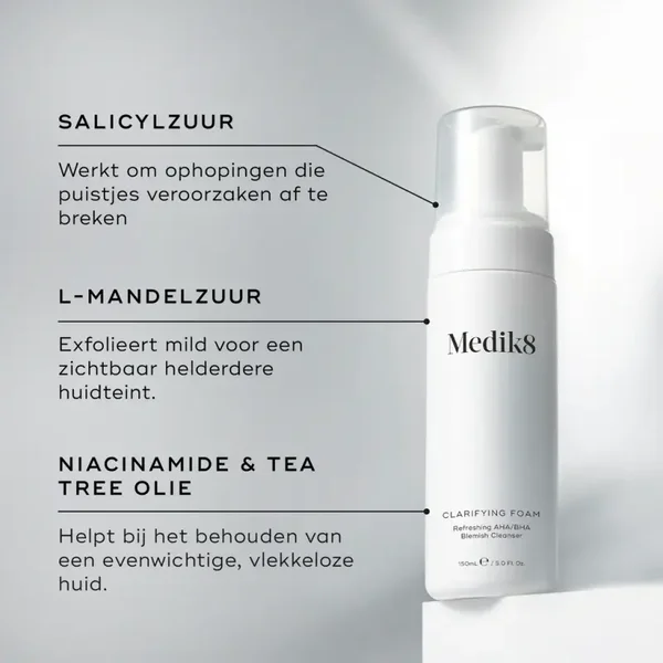 Verwijder voorzichtig dagelijkse olie, onzuiverheden en make-up met Clarifying Foam, een gebruiksvriendelijke reiniger die is ontwikkeld voor een onzuivere huid. Dit diep zuiverende, antibacteriële reinigingsschuim ontstopt de poriën en exfolieert lichtjes de huid zonder uitdroging of irritatie te veroorzaken. Een exfoliërende mix van amandelzuur en salicylzuur wordt gecombineerd met natuurlijke theeboomolie om de teint te vernieuwen en te ontgiften, terwijl rustgevende niacinamide het uiterlijk van een problematische huid kalmeert.Dit zorgt ervoor dat de natuurlijke beschermende oliën van de huid in balans blijven en onzuiverheden veroorzakende bacteriën worden verminderd. Na verloop van tijd wordt de toon en textuur van de huid aanzienlijk verbeterd.